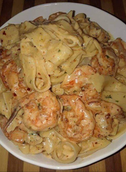 Cremige Garnelen-Fettuccine-Nudeln mit hausgemachter Alfredo-Sauce